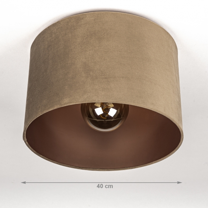 Samt, wer würde sich darüber nicht freuen? Die Farbe des Schirms ist Champagner und wird auch Taupe genannt. Es ist eine warme Farbe, die zwischen Braun und Grau liegt. Um es noch schöner zu machen, ist die Innenseite des Lampenschirms kupferfarben ausgeführt. Das verleiht nicht nur ein Hotel-Chic-Feeling, sondern sorgt auch für extra warmes und stimmungsvolles Licht. Der taupefarbene Lampenschirm hängt an einer schwarzen runden Deckenplatte. Der Schirm hat einen Durchmesser von 40 cm. Eine perfekte Größe; Die Lampe passt sowohl in große als auch in kleine Räume! Schön im Schlafzimmer, Wohnzimmer, Kinderzimmer. Wo eigentlich nicht?Vorteile der Deckenleuchte mit taupefarbenem Schirm