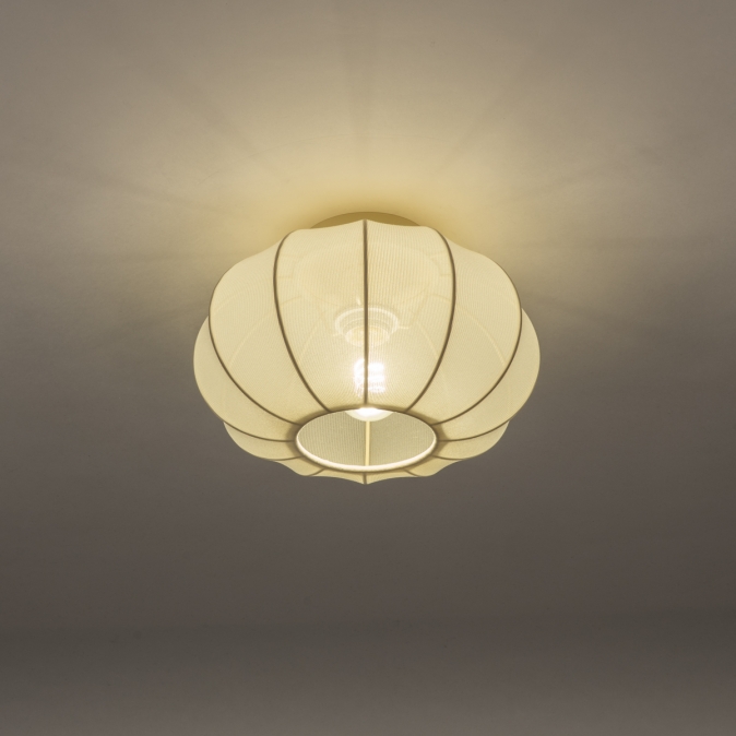 Kleine Deckenlampe aus buttergelbem Stoff