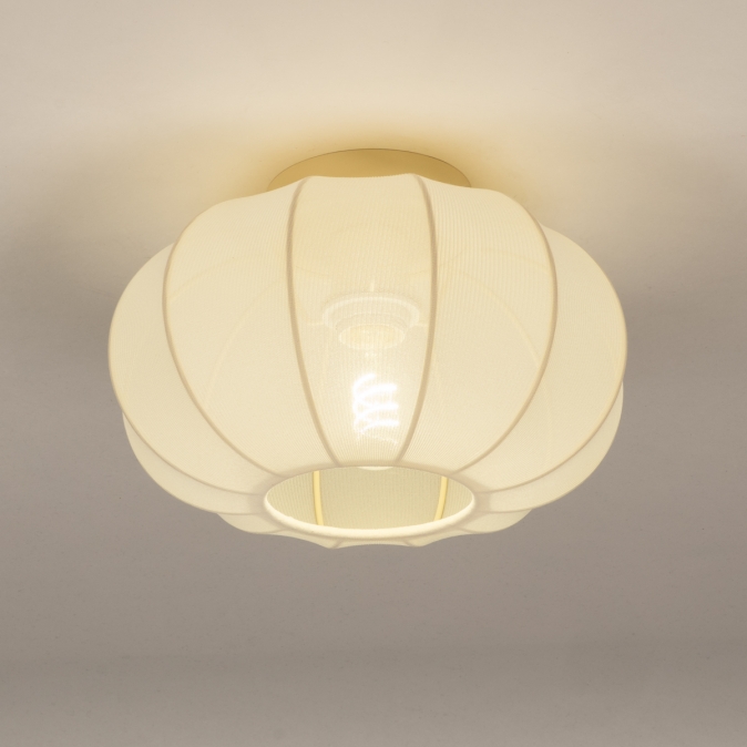 Garantierte Atmosphäre! Diese buttergelbe Lampionlampe verbreitet ein schönes und sanftes Licht. Ideal für das Schlafzimmer, Kinderzimmer oder Babyzimmer. Die Deckenleuchte ist aus einem schönen buttergelben Stoff gefertigt, der transparent ist und eine Streifenstruktur hat. Die Turbanform, die Linien des Lampions und der schöne Stoff machen diese Lampe schön, zart und rustikal.Vorteile der Deckenlampe mit Lampion aus Stoff