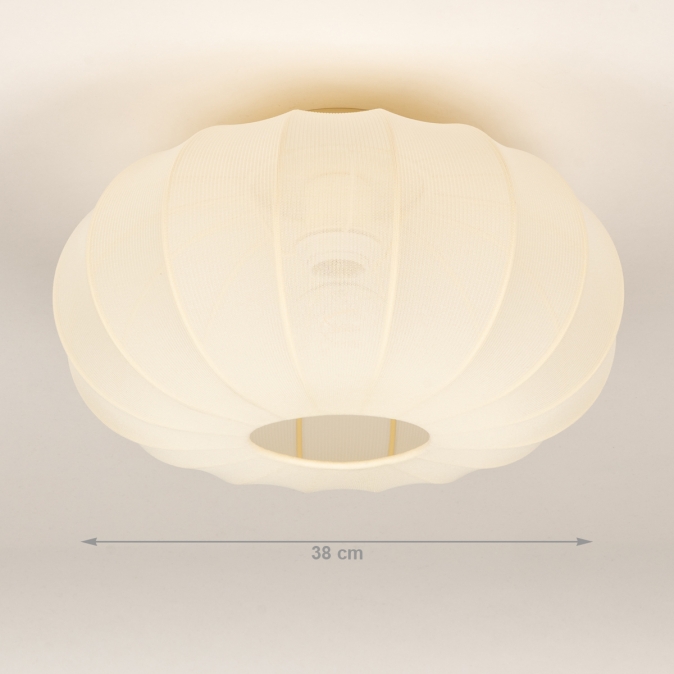 Lampionlampen sehen wir häufig in trendigen Wohnstilen wie Japandi und dem skandinavischen Stil. Lampions haben ein zartes Aussehen. Diese Lampionlampe hat das gleiche zarte Aussehen, wirkt aber durch den schönen Stoff (anstelle von Reispapier) noch etwas luxuriöser. Mit einem Dimmer bestimmen Sie die Atmosphäre in Ihrem (Schlaf-)Zimmer und die Lampe kann auch als Nachtlampe verwendet werden. Das ist natürlich sehr schön für das Babyzimmer oder Kinderzimmer.Abmessungen