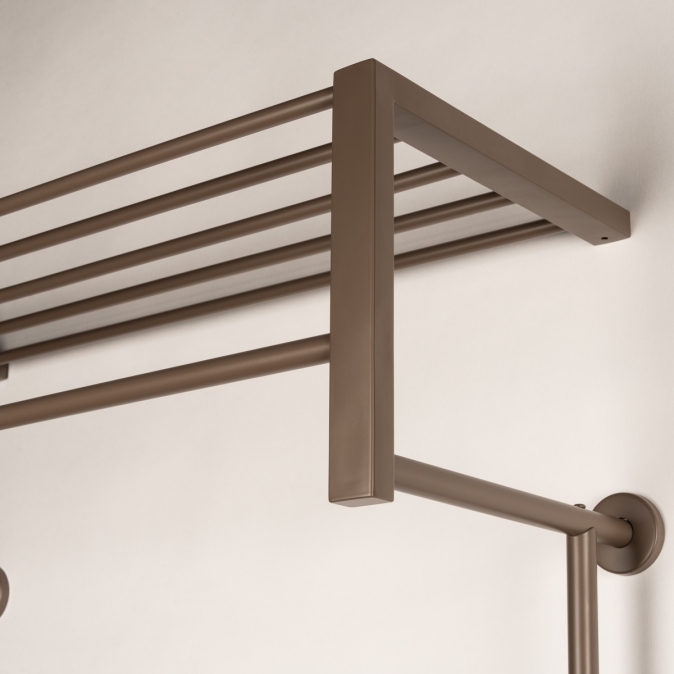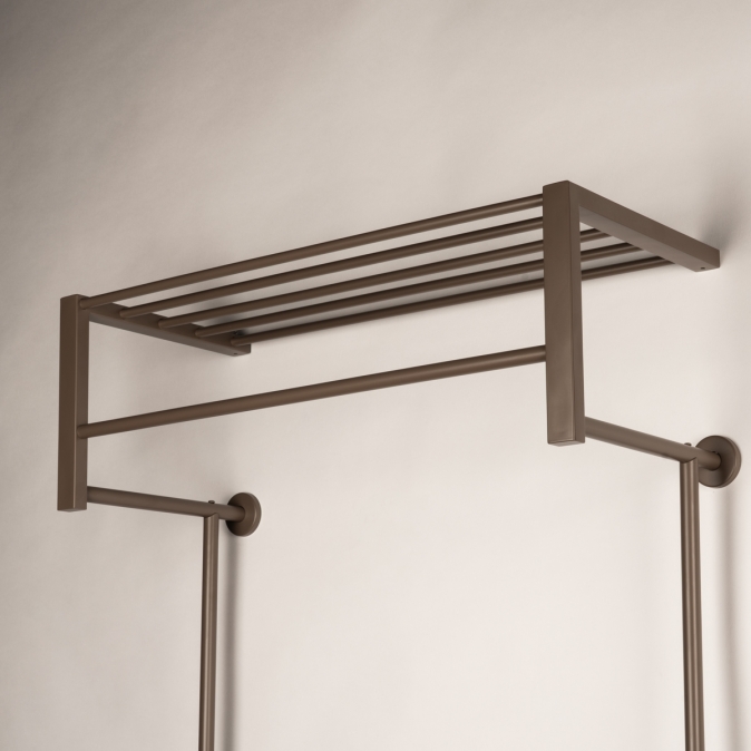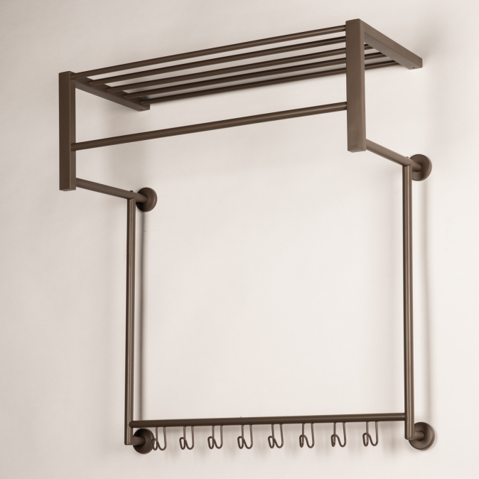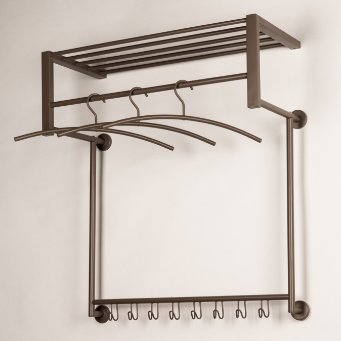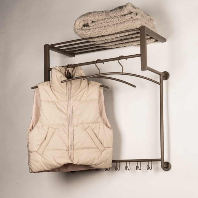 Braune Japandi Wandgarderobe mit Hutablage und Haken