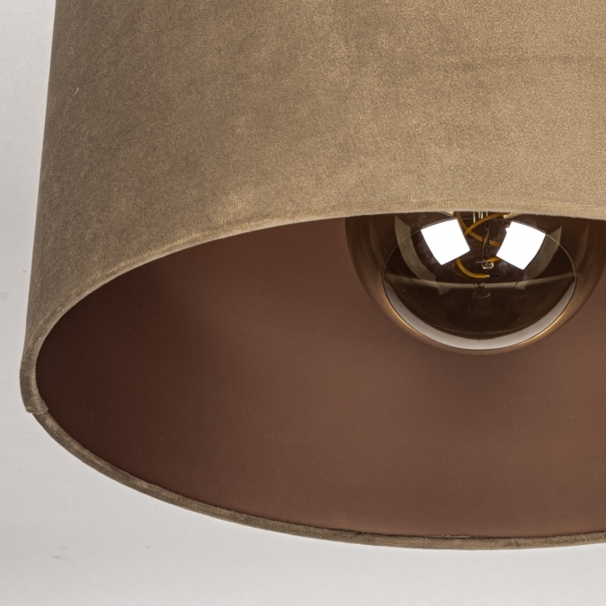 Zwei Pendelleuchten über dem Esstisch an einer Deckenplatte, ohne störende Schnüre oder Kabelkanäle an der Decke? Diese Doppel-Pendelleuchte ist die Lösung! Auch ideal, wenn sich der Lichtpunkt nicht genau über dem Esstisch befindet. Die verstellbare, schwarze Doppel-Pendelleuchte besteht aus mehreren Teilen. Dadurch ist die moderne Hängeleuchte drehbar und verstellbar. Nicht nur praktisch, sondern auch schön. Eine Kombination, die wir lieben. Auffallend sind die schönen Lampenschirme aus taupefarbenem "Samt".Und um das Ganze noch schöner zu machen, ist die Innenseite dieser besonderen Lampenschirme kupferfarben. Dies vermittelt nicht nur ein angenehmes Hotelambiente, sondern sorgt auch für besonders gemütliches und stimmungsvolles Licht.