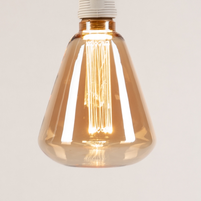 • Extra warmes bernsteinfarbenes Licht für maximale Atmosphäre• Kegelform mit sichtbaren Filamenten