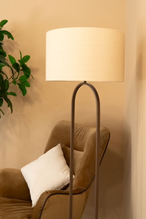 Elegant, modern, zeitlos und ganz nach Ihren Wünschen: Diese Stehlampe besteht aus einem eleganten braunen Lampenfuß und einem runden Leinen-Schirm in Beige. Zusammen sorgen sie für Atmosphäre in Ihrem Zuhause und verleihen eine ruhige, zeitlose Ausstrahlung. Das braune Metallgestell hat eine offene, ovale Form und wirkt ausgesprochen harmonisch. Der runde Schirm mit einem Durchmesser von 45 cm ist in Beige gehalten, besitzt eine Leinenstruktur und eine weiße Innenseite. Dies sorgt nicht nur für einen natürlichen Look, sondern auch für eine schöne Lichtreflexion.Vorteile dieser Stehlampe: