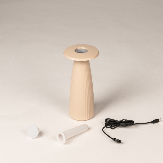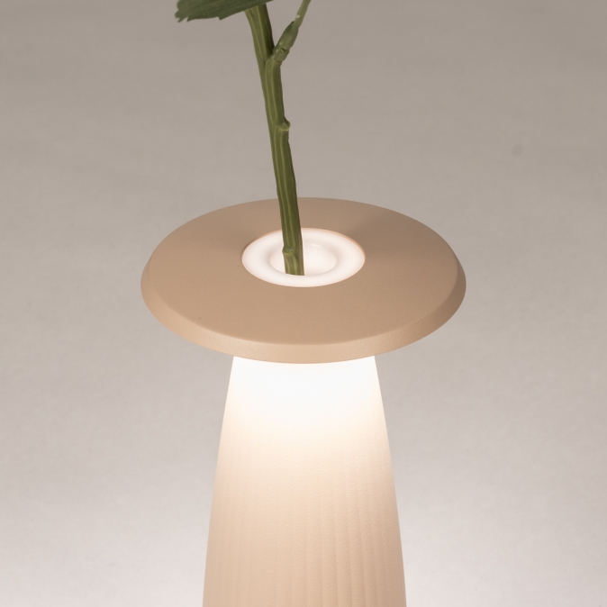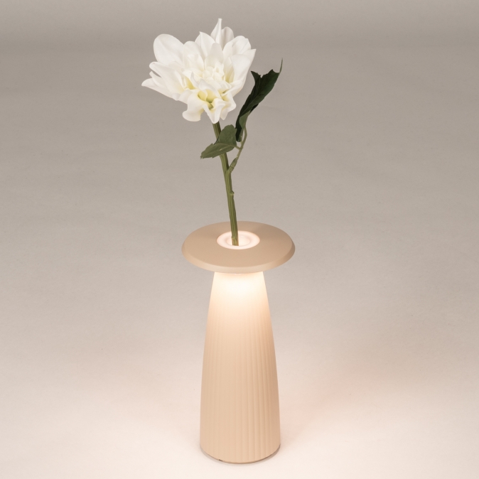 Beige Tischlampe und Vase in einem; kabellos und einfach aufladbar!