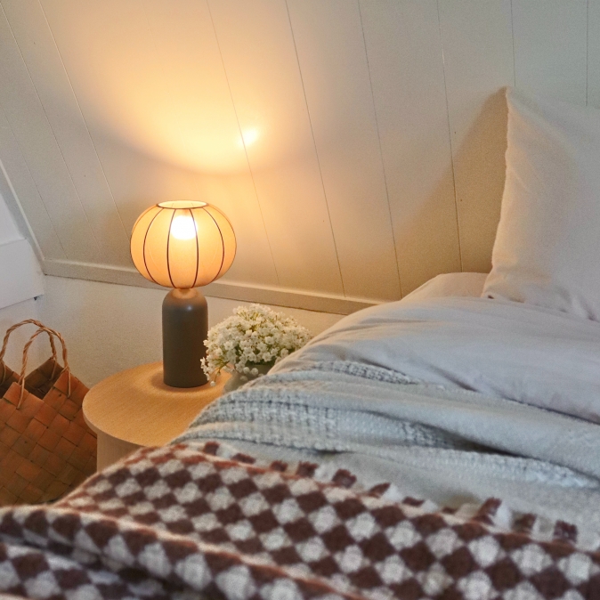 Die Lampe kombiniert einen eleganten Metallfuß in einem schicken, schokoladenbraunen Farbton mit einem raffinierten, lichtdurchlässigen Schirm in Lampionform. Die sanfte Ausstrahlung des Schirms sorgt für ein angenehmes, stimmungsvolles Licht. Perfekt für den Nachttisch, den Schreibtisch oder eine gemütliche Ecke!Vorteile der braunen Tischleuchte mit luxuriösem Schirm