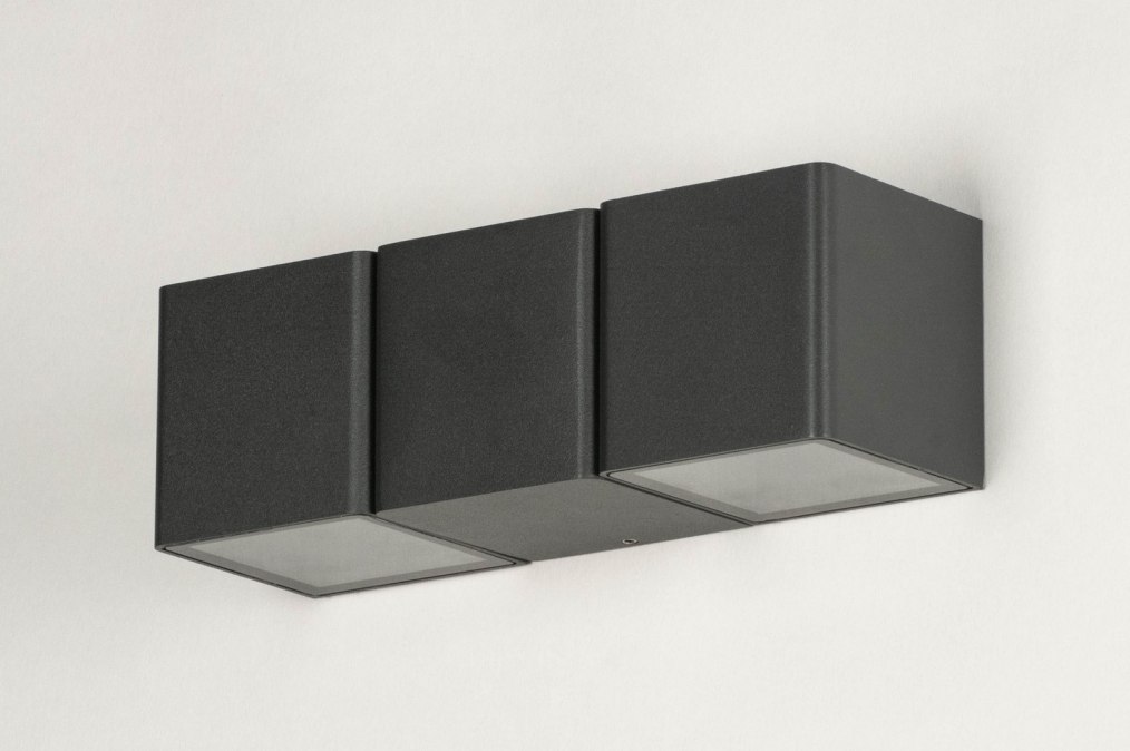 Moderne LED-Außenleuchte mit spektakulärem Lichteffekt! Diese anthrazitgraue Außenleuchte besteht aus 3 Würfeln. Die LED-Beleuchtung befindet sich in den beiden äußeren Würfeln. Die Ober- und Unterseite sind hier mit einem Klarglas abgeschirmt, wodurch ein schöner gradlinieger Lichteffekt entsteht.